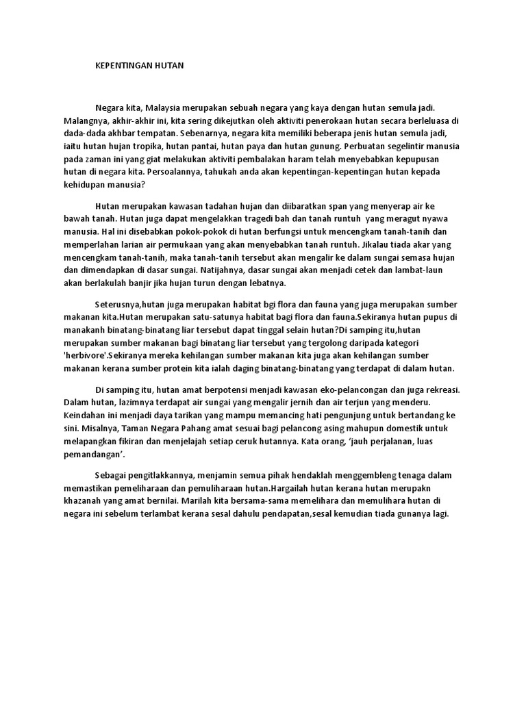Contoh Karangan Spm Kepentingan Memelihara Dan Memulihara Hutan